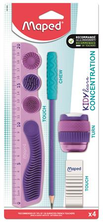 Írószer készlet, 4 darabos, MAPED "Kidy Learn Concentration", lila