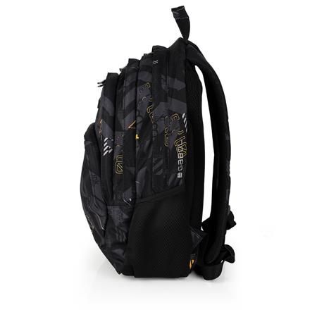 Hátizsák, iskolatáska, cipzáras, GABOL "Byte", fekete, geometrikus mintás