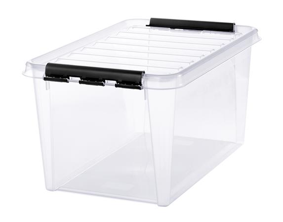 Műanyag tárolódoboz, 47 liter, fekete fogantyúkkal, SMARTSTORE "Classic 45", átlátszó