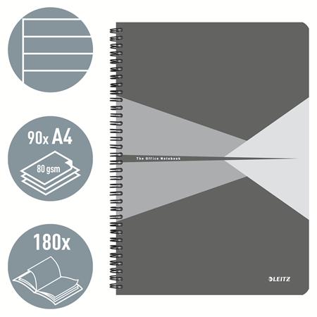 Spirálfüzet, A4, vonalas, 90 lap, PP borító, LEITZ "Office", szürke