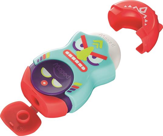 Hegyező és radír, egylyukú, tartályos, MAPED "Fancy", vegyes színek