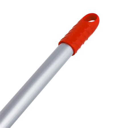 130 cm hosszú fehér-alukróm felmosónyél extra rozsdaálló réteggel, csavarodó akasztókupakkal, pink műanyag részekkel.